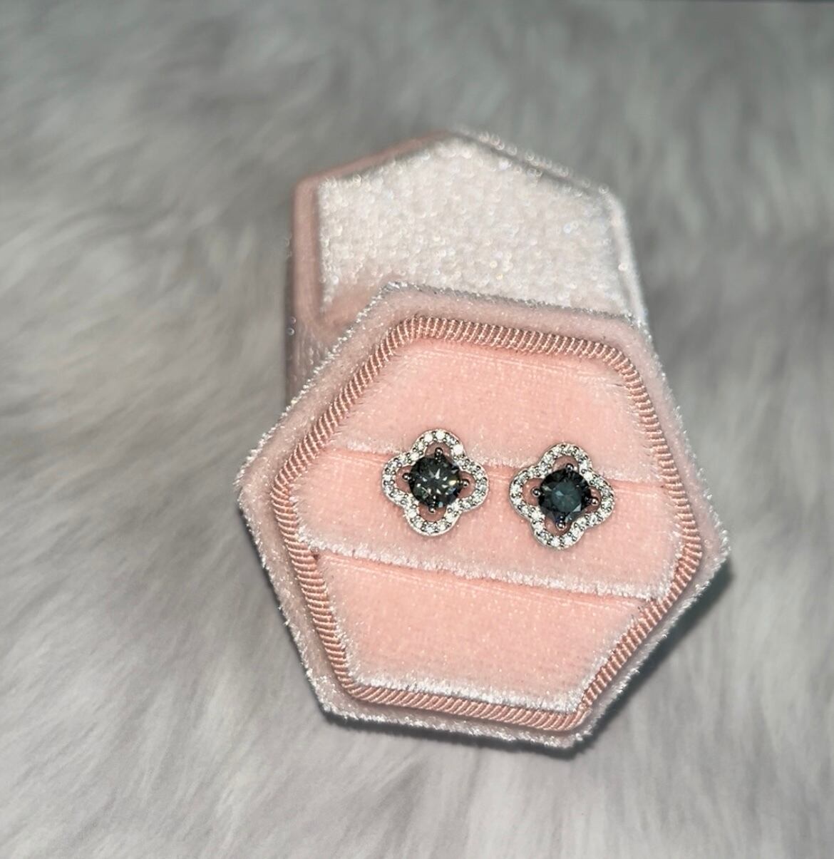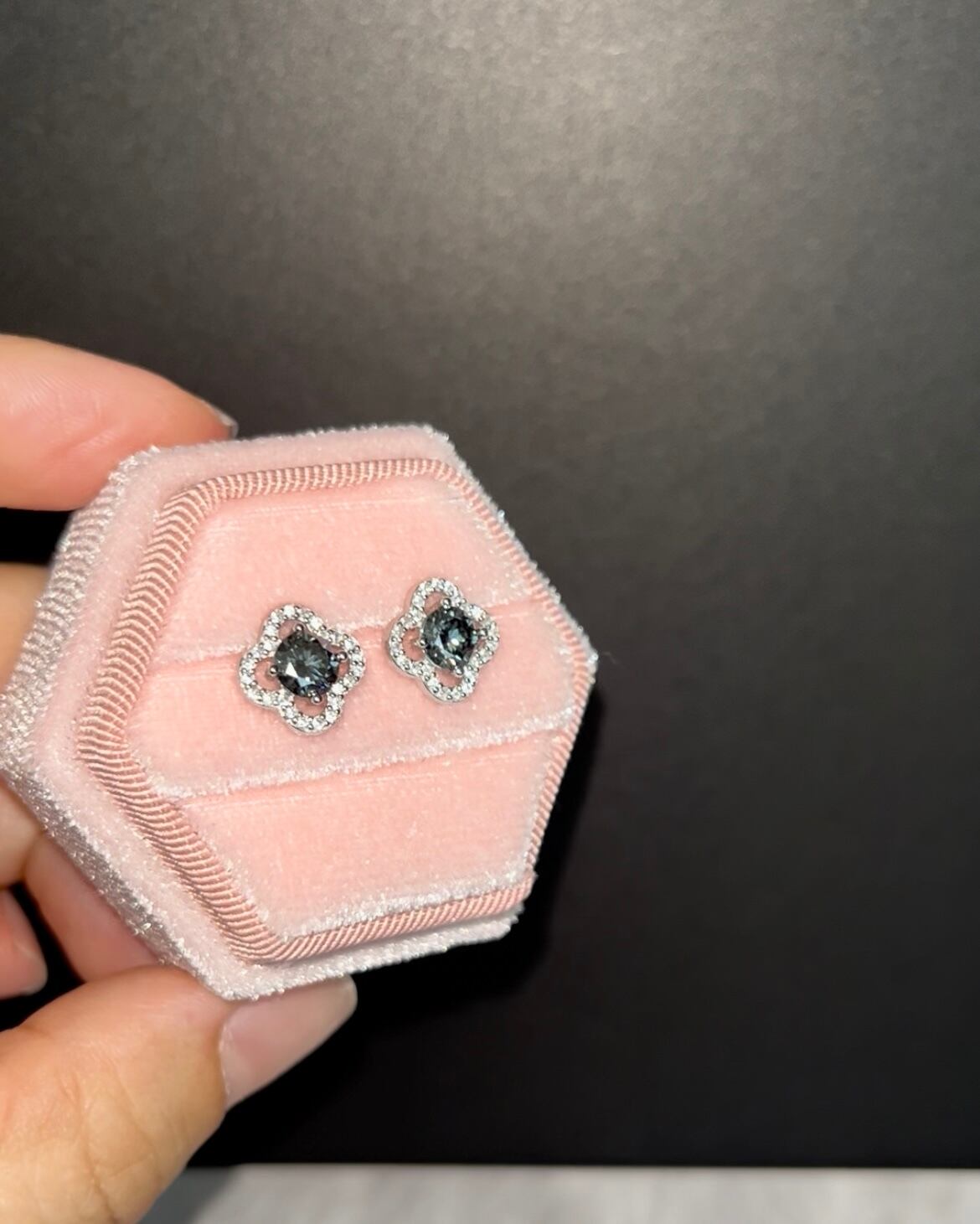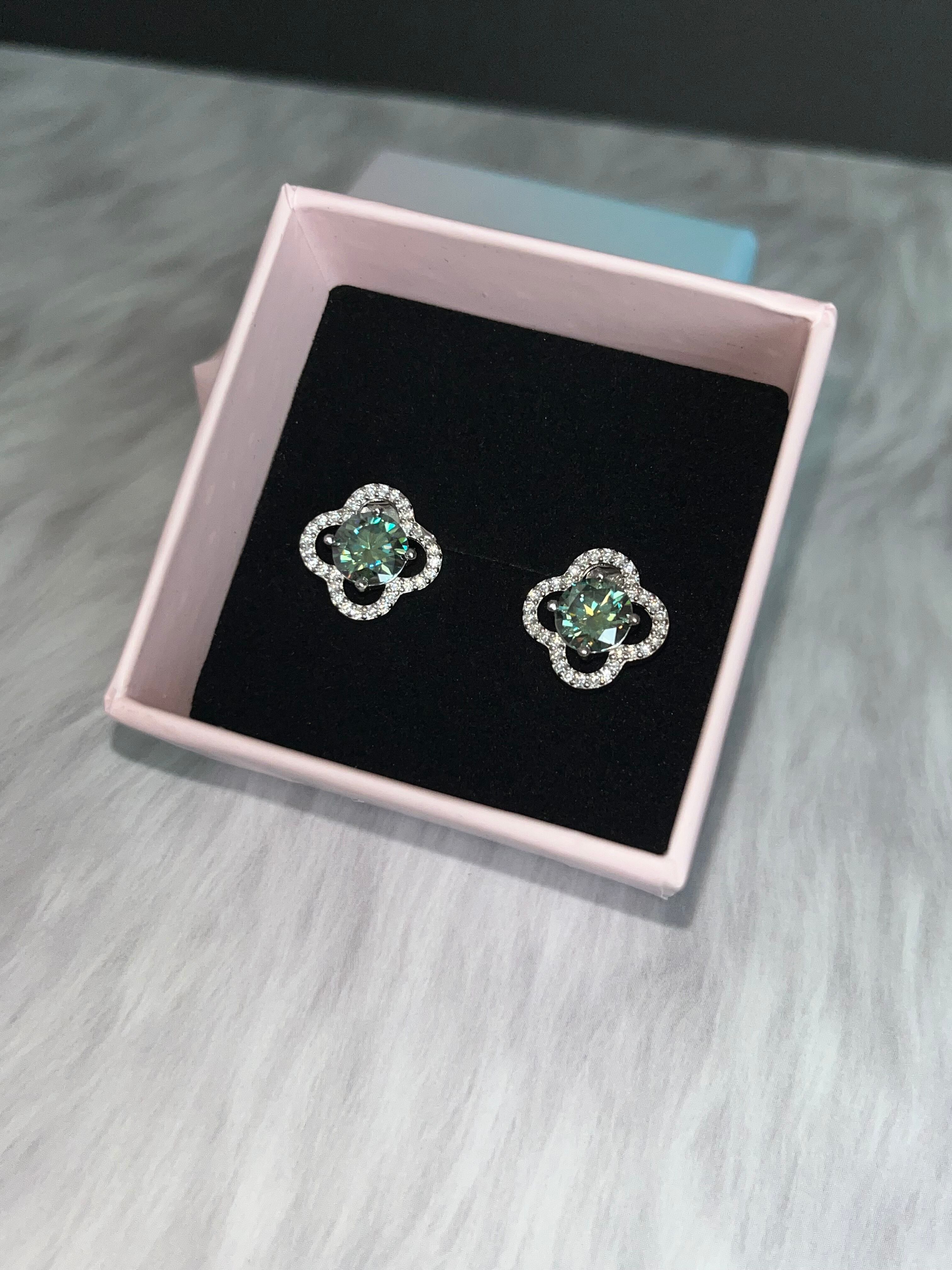 幸運のモチーフとして人気のクローバーデザインを、モアッサナイトで仕立てたピアス。