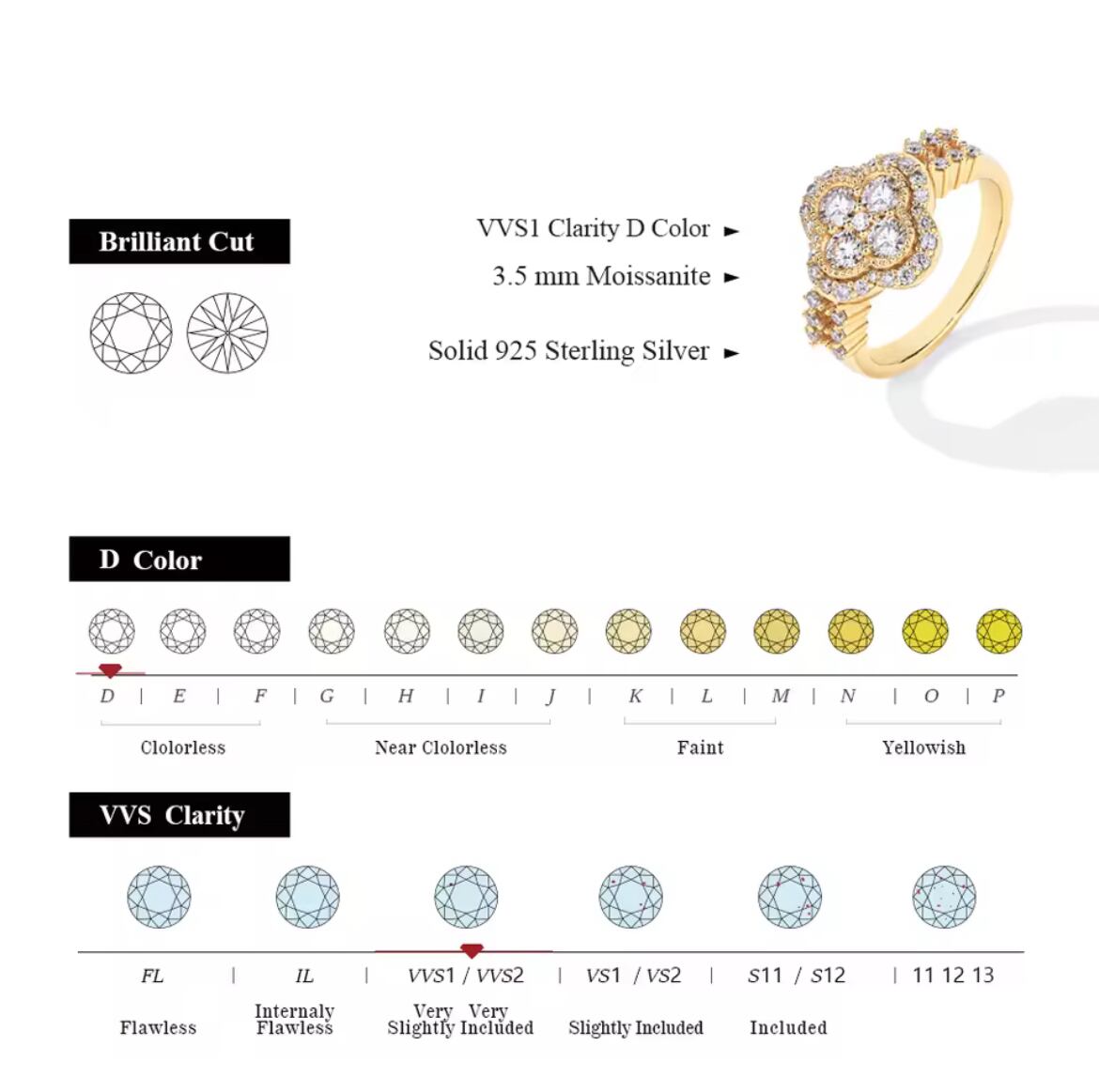 • 宝石: VVS1クラリティ Dカラー 3.5mm モアサナイト