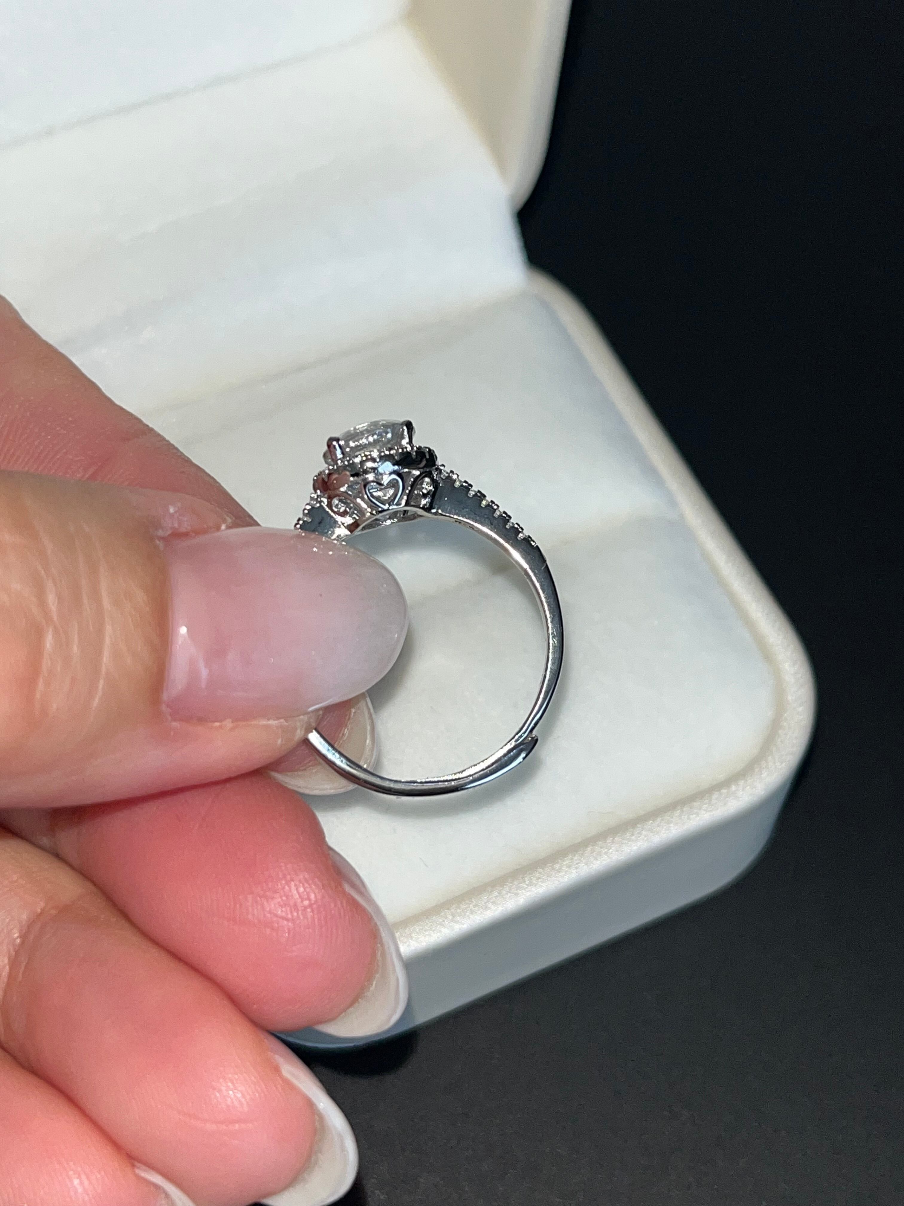 【即納】1.0ct Moissanite Halo Ring-サイズ調整可/s925